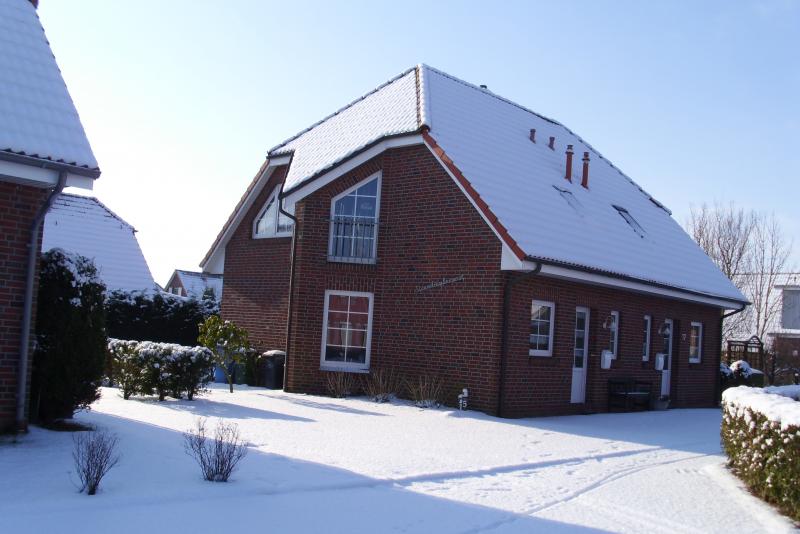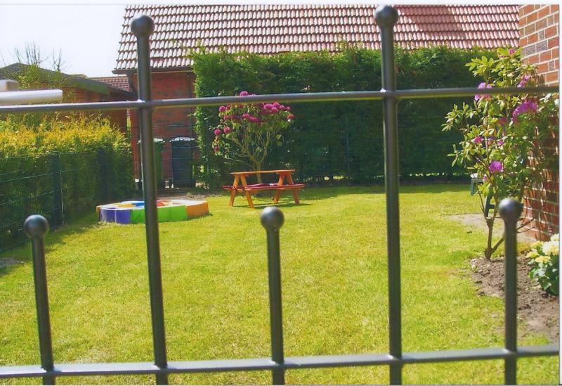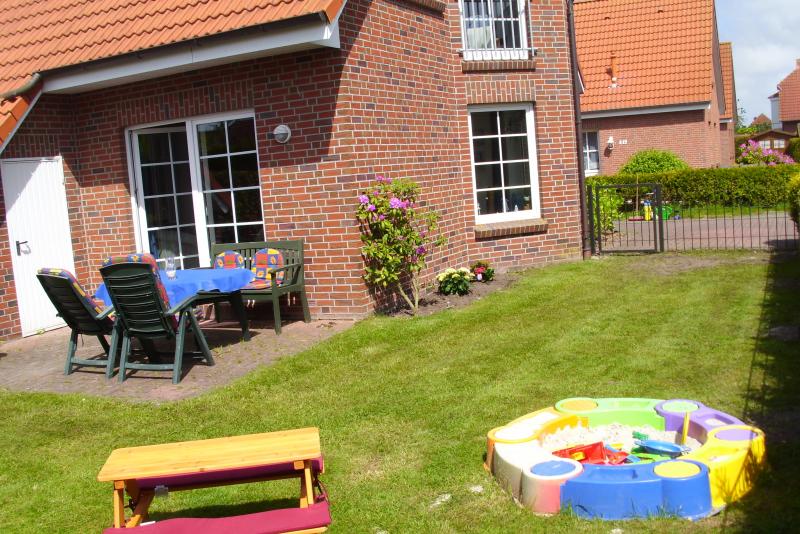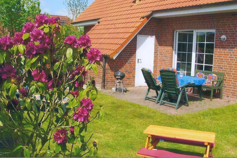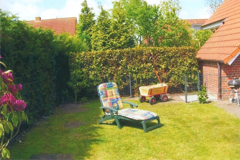 Unser Ferienhaus steht am Ende einer Sackgasse, auf einem 200 m² großen Grundstück mit einer, von der Straße abgewandten Südterrasse und Liegewiese.