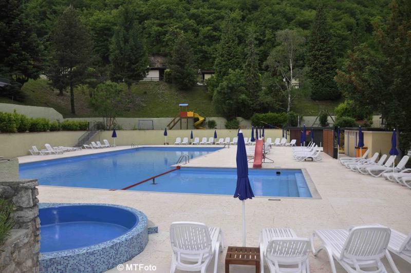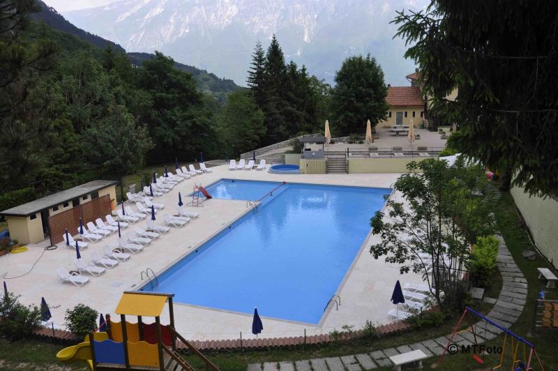 Bungalow oberhalb des Gardasee-Westufers in der Feriendorf-Siedlung "Villaggio di Sunclass" mit Gemeinschaftspool.