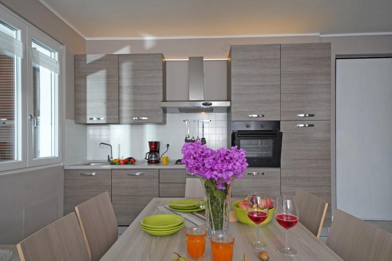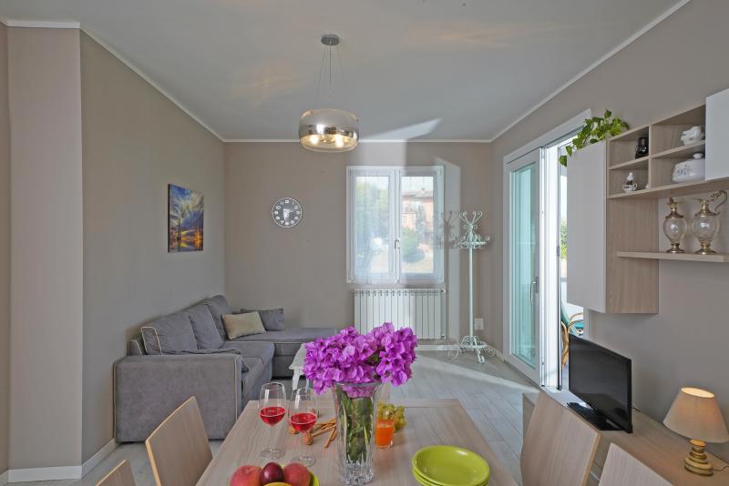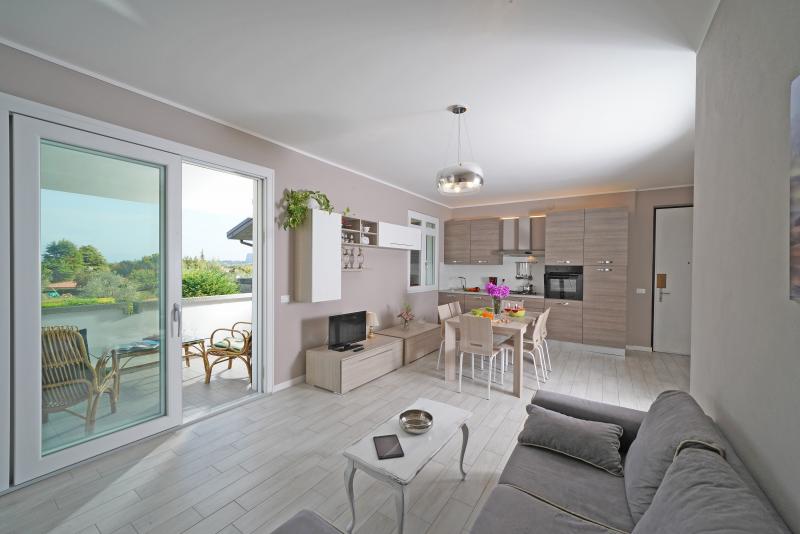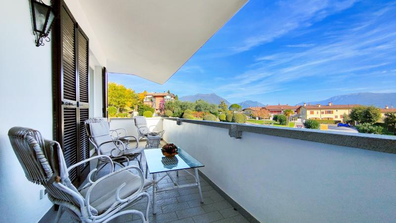 Die Ferienwohnung befindet sich im 1. Stock, mit Balkon. 500 m vom Badestrand Romantica in Manerba del Garda am Gardasee.