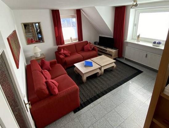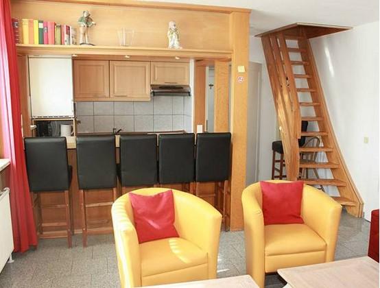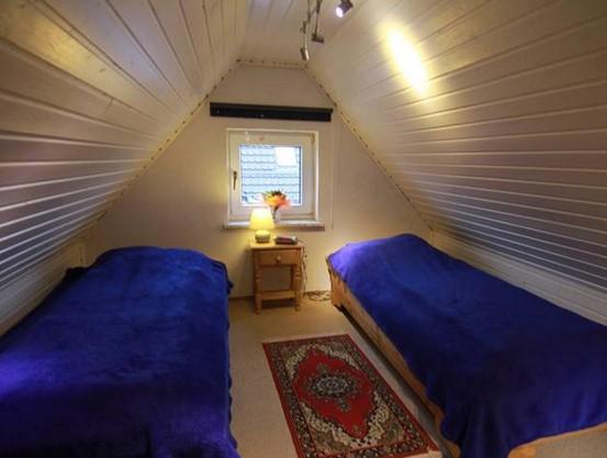 Die Ferienwohnung 3 im 1. Obergeschoss. hat 2 separate Schlafräume, 1 x mit 1 Doppelbett + 1 x mit 2 Einzelbetten und 1 Schlafsofa im Wohnraum, Duschbad. Hinter und vor dem Haus befindet sich eine Rasen- und Gartenfläche mit Strandkorb und Gartenmöbeln.Ausstattung