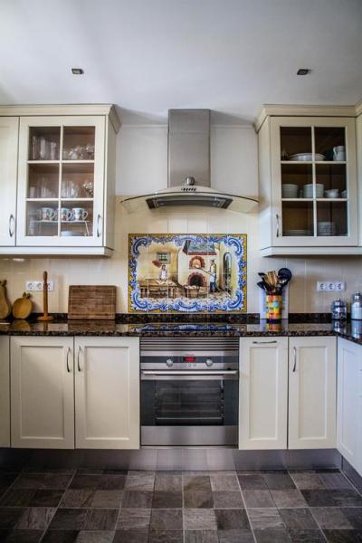 - Die Küche ist vollständig eingerichtet. Herd,Ofen,Mikrowelle,Spülmaschine und alles zum Kochen oder Backen ist vorhanden.