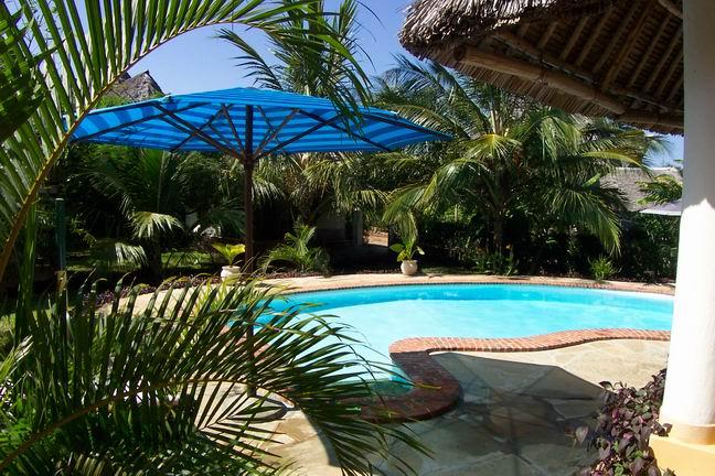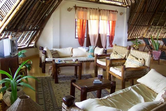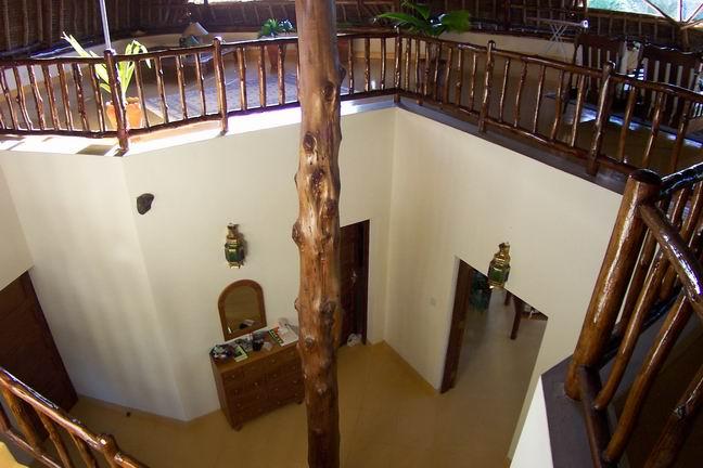 Das hohe Makuti-Dach sorgt zusammen mit großdimensionierten Giebelöffnungen und den zwei offenen Galerien für ein angenehmes Raumklima ohne Klimaanlage.