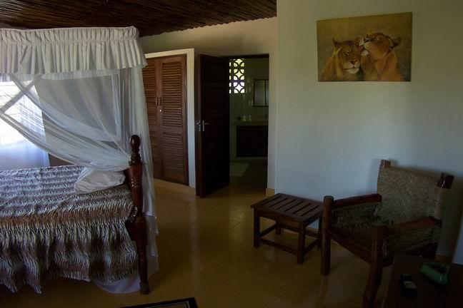 Die Chalets für je zwei Erwachsene und 1 Kind bestehen aus je einem Schlafzimmer mit jeweils einem dazugehörigem Bad. Die großzügigen Badezimmer sind modern ausgestattet. In einem Schlafzimmer steht neben dem obligatorischem Doppelbett ein Kinderbett.Durch die hervorragende Ausrichtung des Hauses und je zwei Fenster pro Zimmer, sind alle Räume sehr gut belüftet. Zusätzliche Abkühlung ist in allen Schlafräumen durch Deckenventilatoren gewährleistet.