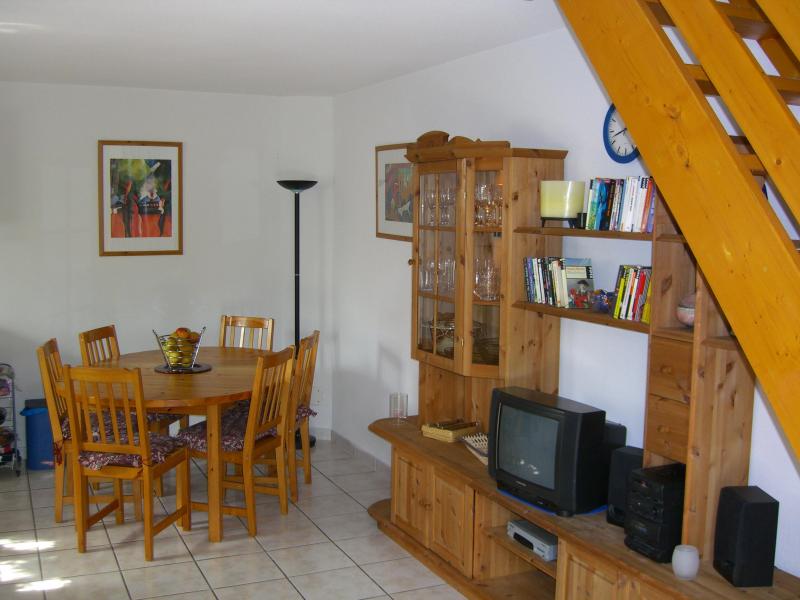 Unser Haus liegt am Ende einer Sackgasse auf einem Eckgrundstück. Vor dem Haus ist eine große Terrasse, sonnenbaden ganztägig möglich.Im Erdgeschoss ist der Wohn-Essbereich mit Küchenzeile und Waschmaschine.