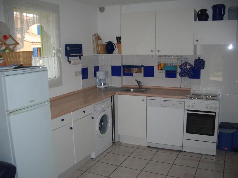 offene Küche, Backofen, Elektroherd, 4-Platten-Herd, Kühlschrank, Gefrierfach, Spülmaschine, Kaffeemaschine