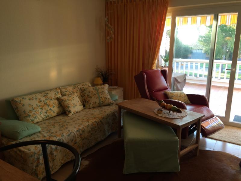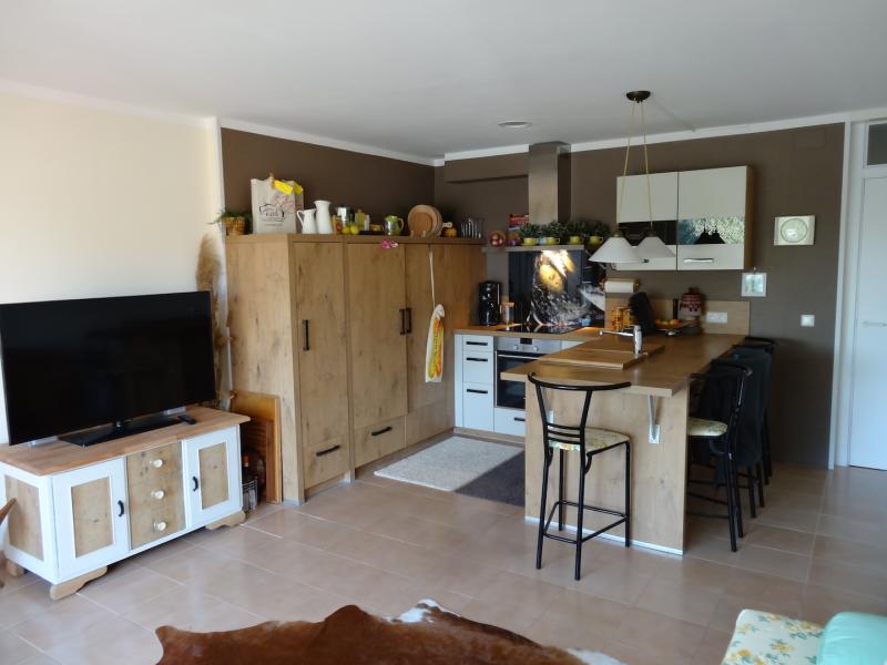 offene Küche, Backofen, Elektroherd, Kühlschrank, Gefrierfach, Toaster, Kaffeemaschine, Cerankochfeld mit 3 Kochstellen, davon eine große für die Paella Pfanne,