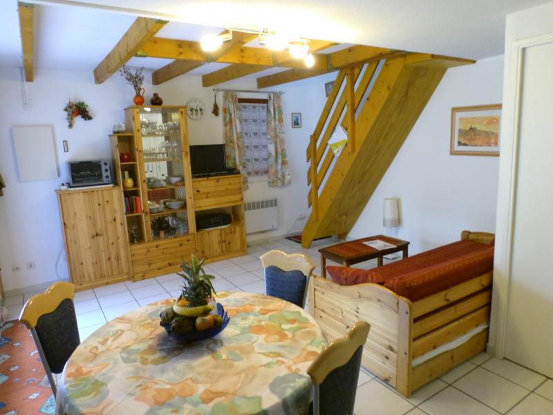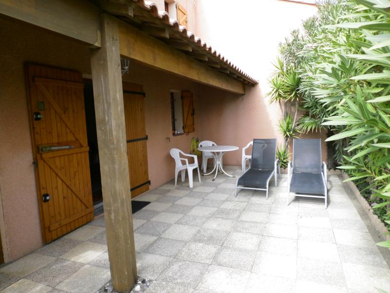 Das Ferienhaus in Gruissan / Les Ayguades mit einer Wohn- und Nutzfläche von 45 m² ist aufgeteilt auf 2 Ebenen.Unten: Wohn-Essbereich mit integrierter Küche, Schlafsofa, WC-Raum und Duschbad (2 getrennte Räume).