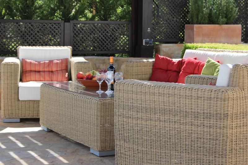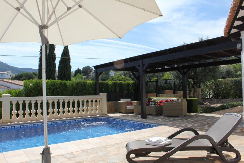 Die Villa ist liebevoll eingerichtet, hochwertig ausgestattet und top gepflegt. Der Pool (8x4), sonnige und schattige Terrassen, komfortablen Sitzgarnituren und Liegestühlen runden das Angebot für einen perfekten Urlaub ab.Auf den Terrassen lässt es sich auch an heißen Tagen gut aushalten, ein angenehmes Lüftchen sorgt hier für Kühlung.
