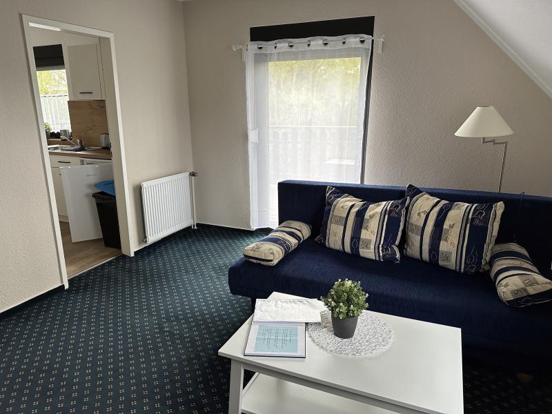 Das Apartment 1 liegt im Obergeschoss des Ferienhauses und bietet auf einer Wohnfläche von 32 m² Platz für maximal 3 Personen.Ausstattung
