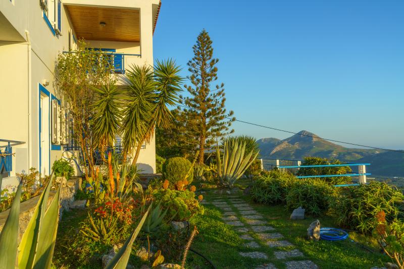 VILLA STELLA ist oberhalb des kleinen Dorfes Mírthios gelegen, und überrascht mit einem unvergesslichen Ausblick über die Bucht von Plakiás und das Libysche Meer. Hoch über der wilden und unverdorbenen Südküste Kretas, in der Nähe des berühmten Klosters von Preveli und dem gleichnamigen Palmenstrand, sind die individuellen, im traditionellen kretischen Stil erbauten und modern eingerichteten Apartments der VILLA STELLA ein Garant für erholsame Tage in der ursprünglichen Schönheit des kretischen Südens.