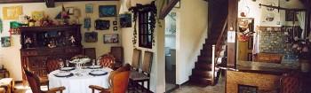 Couchgarnitur, Tisch, 5 Stühle, offener Kamin, Stilvoll eingerichtet mit komfortablen Sitzgelegenheiten um einem schönen Esstisch