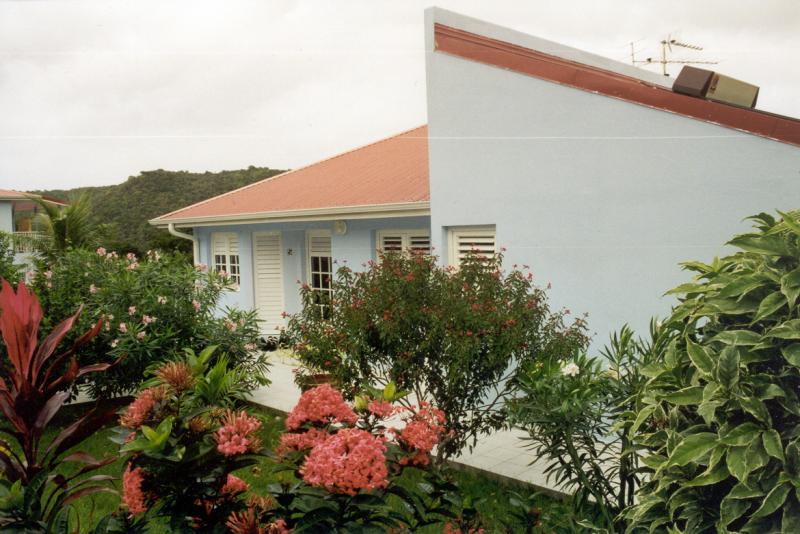 Garten, Gartenmöbel, Grill, Gemeinschaftspool0, 1 Pkw-Stellplatz, in einem tropischen Garten liegt der Pool mit Liegeterrasse. Daneben steht unter einem Sonnendach ein Grill mit Sitzgelegenheiten.