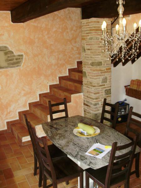Das 4er Appartement ist zweistöckig und verfügt über eine neue, typisch toskanische Wohnküche im Erdgeschoss, 2 Doppelzimmer auf verschiedenen Ebenen (auf Wunsch ist das eine mit 1 Zusatzbett erweiterbar) und Dusche/WC im oberen Stock, Blick auf die Weiden/Wälder/Hügel. Eigene Pergola. Das Aprikosenhäuschen ist Teil unseres Agriturismo.